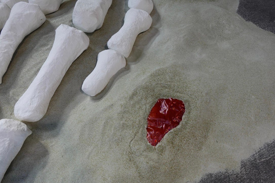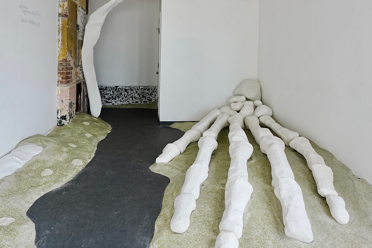 When I visited Diane’s studio last October, a gigantic human sternum lay on a table in the middle of the space like an alien autopsy. There were other bones round, 25 times human scale. The artist describes the project as both an installation and a story.